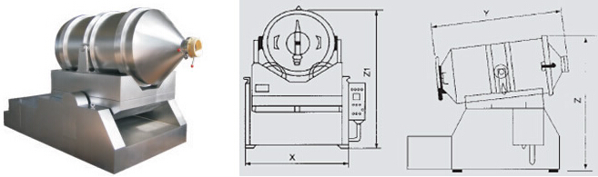 產品詳情 工作原理 二維混料機主要由轉筒、擺動架、機架三大部分構成。轉筒裝在擺動架上,由四個滾輪支撐并由兩個擋輪對其進行軸向定位,在四個支撐滾輪中,其中兩個傳動輪由轉動動力系統拖動使轉筒產生轉動,擺動架由一組曲柄擺桿機構來驅動,曲柄擺桿機構在機架上,擺動架由軸承組件支撐在機架上。 性能特點 EYH二維混料機的轉筒可同時進行二個運動,一個為轉筒的轉動,另一個為轉筒隨擺動架的擺動。被混合物料在轉筒內隨轉筒轉動、翻轉、混合的同時,又隨轉筒的擺動而發生左右來回的摻混運動,在這兩個運動的共同作用下,物料在短時間內得到充分的混合。EYH二維混料機適合所有粉、粒狀物料的混合。